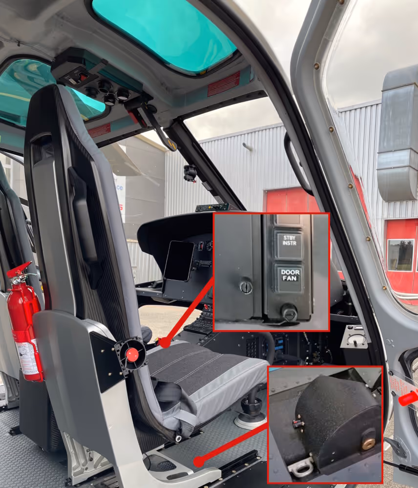 The Pilot Door Air Blower is a certified system designed to prevent condensation and moisture buildup on the pilot door window. Especially developed for sling load operations, it guarantees clear visibility in demanding environments, ensuring pilot safety and operational efficiency.System Features- Dedicated cockpit switch: simple ON/OFF operation on the center console